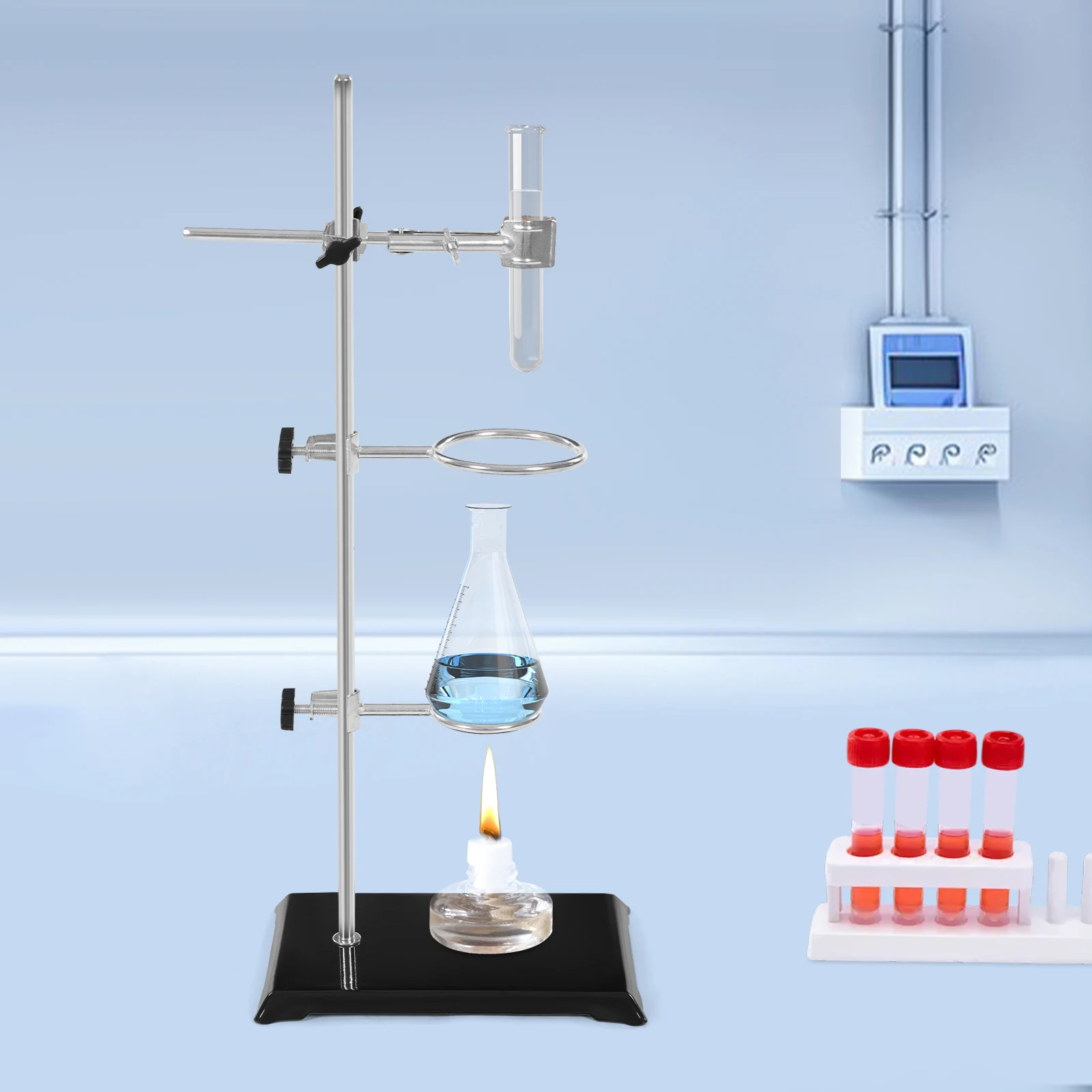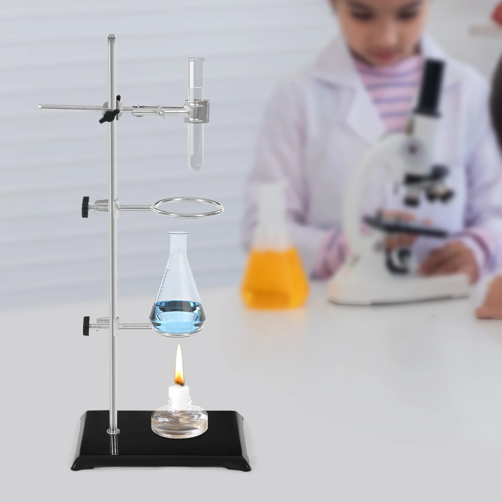 Multi-functional Use: The product is equipped with a base, a flask clamp, and large, and small rings, making it suitable for a variety of experimental equipment, such as beakers, test tubes, flasks, etc., to provide solid support to adapt to a variety of experimental scenarios.