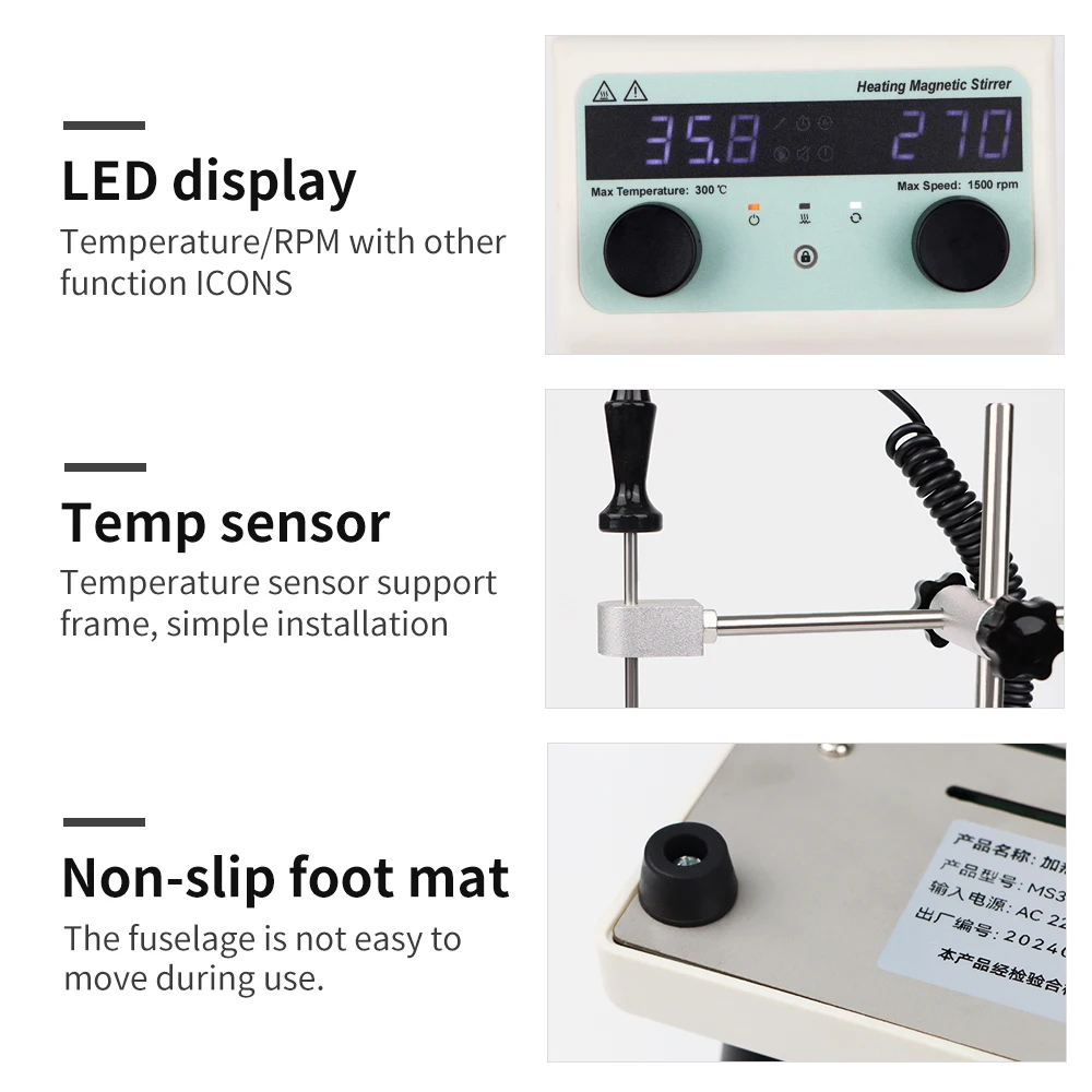 This magnetic stirrer can do both heating and stirrer. lt can be used for mixing low viscosity liquid or solid liquid mixture. lt can adapt to different situation.